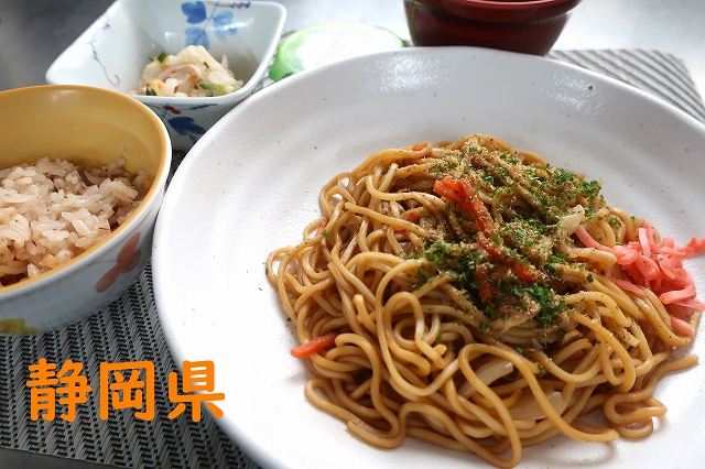 桜えびごはん 富士宮焼きそば 落花生なます お吸い物 お茶プリン