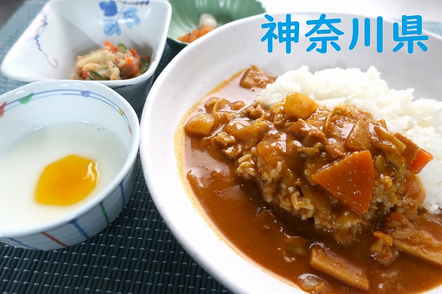 よこすか海軍カレー おかかサラダ 漬物 杏仁豆腐