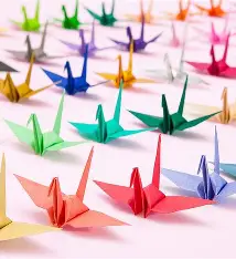 解体、選別された折り鶴は、千羽鶴再生和紙として生まれ変わります。