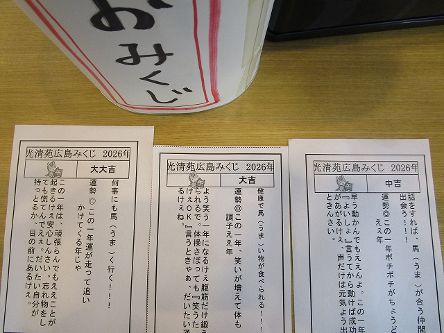 初詣を行い、おみくじを利用者様に引いてもらいました。