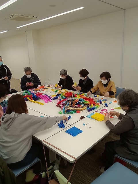 折鶴の解体作業を皆さんに体験してもらいました。