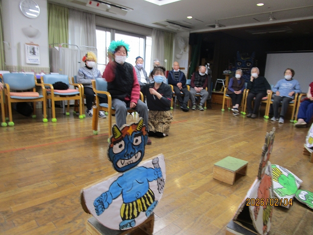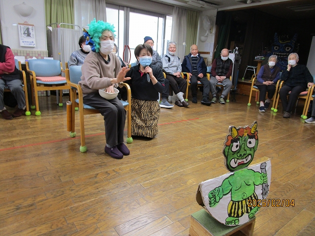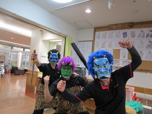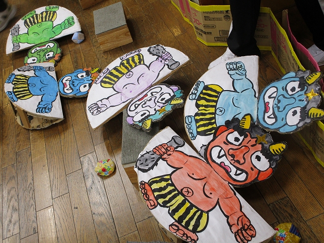 今年は鬼の的にお手玉を投げて倒すゲーム