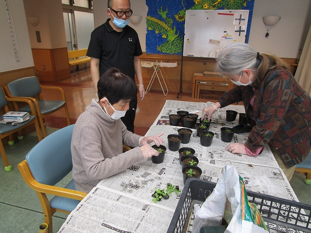 皆さんに手伝っていただき植え替えをしました(#^^#)